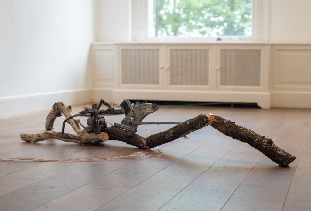 He creates robotic installations and sculptures from discarded objects and found materials, like a chair found on the street, or a tree that fell down during the storm. By de- and reconstructing, and intervening mechanically in the objects, he does not return them to their original function, but reanimates them with human-like characteristics.